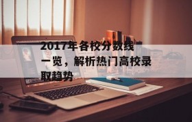 2017年高考录取工作已经圆满结束,各大高校分数线成为考生和家长关注的焦点,本文将为您详细解析201...