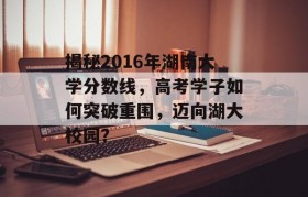 2016年,高考学子们纷纷为自己的未来拼搏,而湖南大学作为我国知名的高等学府,备受考生和家长的关注,...