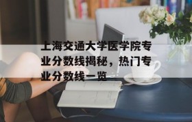 近年来,随着我国医疗事业的蓬勃发展,医学专业成为越来越多考生的首选,上海交通大学医学院作为我国顶尖医...