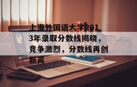 近年来,我国高等教育事业蓬勃发展,越来越多的优秀学子涌入各大高校,上海外国语大学作为我国外语类高等教...