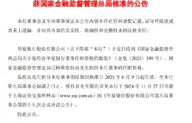 6月11日金融一线消息,华夏银行今日公告称,该行于近日收到《国家金融监督管理总局关于张传良华夏银...