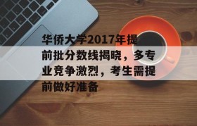 华侨大学2017年提前批分数线正式揭晓,吸引了众多考生和家长的关注,作为我国著名的高等学府,华侨大学...