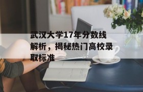 近年来,高考分数线一直是广大考生和家长关注的焦点,作为国内顶尖高校之一,武汉大学每年的分数线都备受瞩...