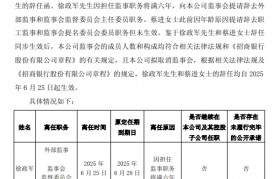6月25日金融一线消息,招商银行公告,公司监事会收到本公司外部监事徐政军的辞任函。徐政军因担任监...
