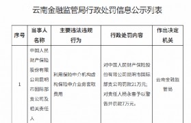 6月5日金融一线消息,据云南金融监管局行政处罚信息公示列表显示,中国人民财产保险股份有限公司昆明...