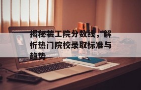 随着高考成绩的揭晓,广大考生和家长纷纷投入到志愿填报的筹备中,在这其中,装工院分数线成为了众多考生关...