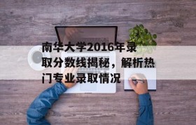 近年来,随着我国高等教育的快速发展,越来越多的考生和家长关注高校的录取分数线,南华大学作为一所具有悠...
