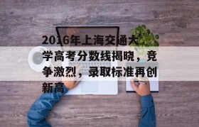 2016年,我国高考大幕落下,广大考生和家长翘首以盼的高考分数线陆续揭晓,作为我国顶尖高等学府之一,...