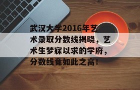 随着高考的落幕,各大高校的录取分数线也陆续揭晓,作为我国顶尖学府之一,武汉大学一直是广大考生和艺术生...