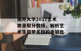随着高考成绩的揭晓,广大考生和家长纷纷开始关注各大高校的录取分数线,对于有志于从事美术行业的学子来说...