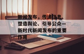 新闻发布是新闻传播的重要环节,是政府、企事业单位、社会组织等主体向公众传递信息、塑造舆论、引导公众的...