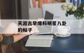 那些明星八卦背后的真相天涯论坛,作为我国最早的中文社区之一,曾经是无数网友热议的焦点,关于明星八卦的...