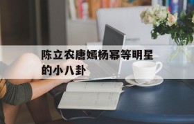 陈立农、唐嫣、杨幂等明星小八卦大揭秘!娱乐圈又掀起了一股“小八卦”热潮,陈立农、唐嫣、杨幂等明星纷纷...