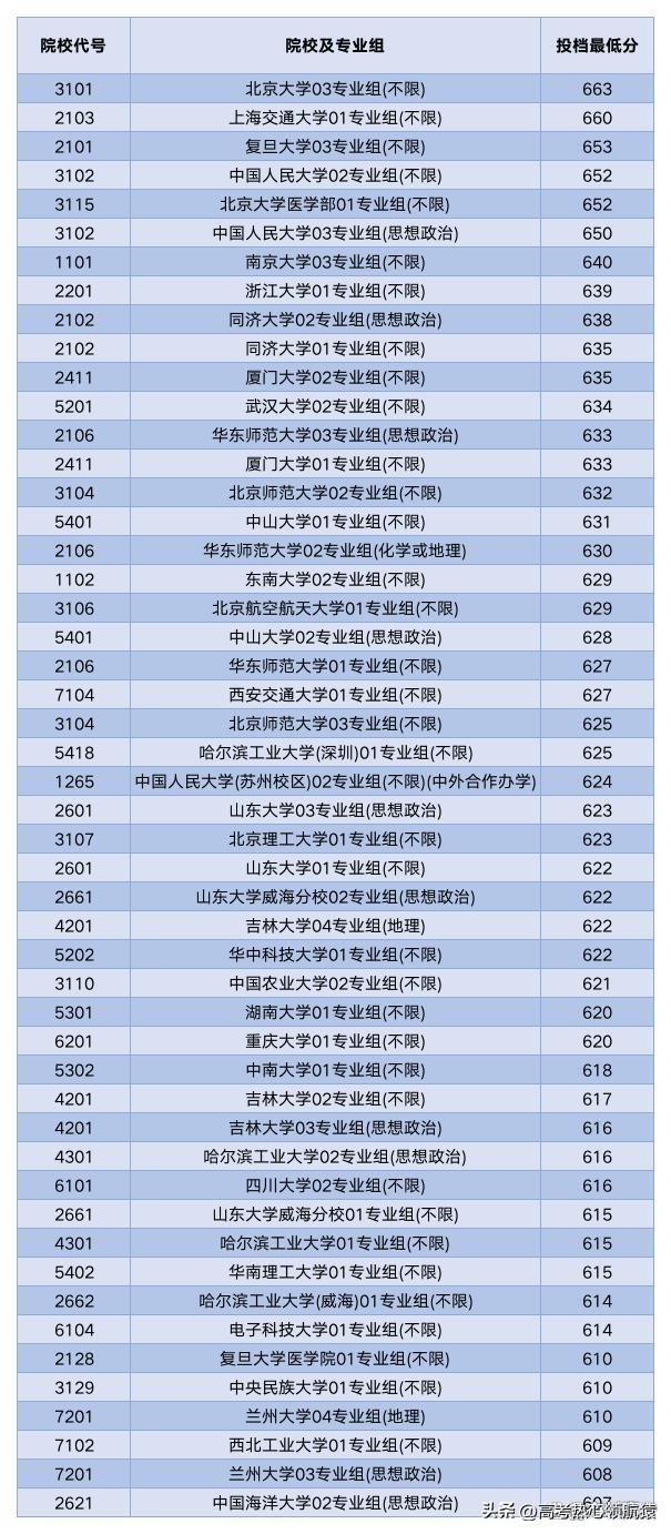 2023年985大学录取分数线TOP50清单(浙江一段)