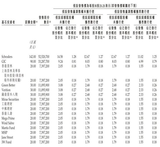 其中,施罗德认购约1.42亿美元,Schroders认购1.42亿美元,GIC认购9000万美元,香港景林认购2000万美元,上海景林及华泰资本投资认购2000万美元;