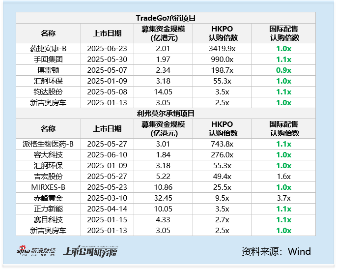 部分券商已形成“专职”承销“包装类项目”的业务模式。以TradeGo、利弗莫尔为代表的机构,其承销标的普遍呈现“机构冷、散户热”的极端分化特征:国际配售认购倍数普遍低于1.5倍,靠散户高倍数认购触发回拨,将散户视为“接盘侠”。