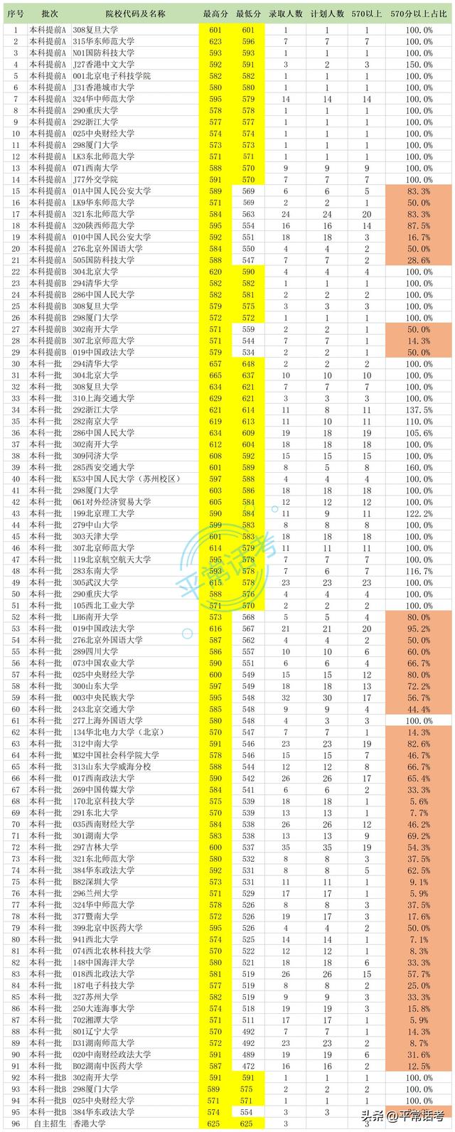 包括计划人数,录取570分以上。