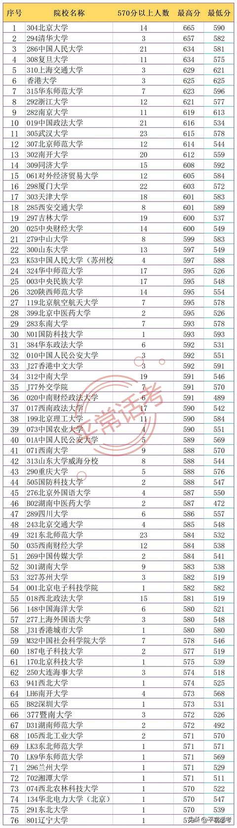 查2023年内蒙古高考一分一段表,文科570分及以上正好有570名考生。所以,这些考生都被哪些大学录取了?