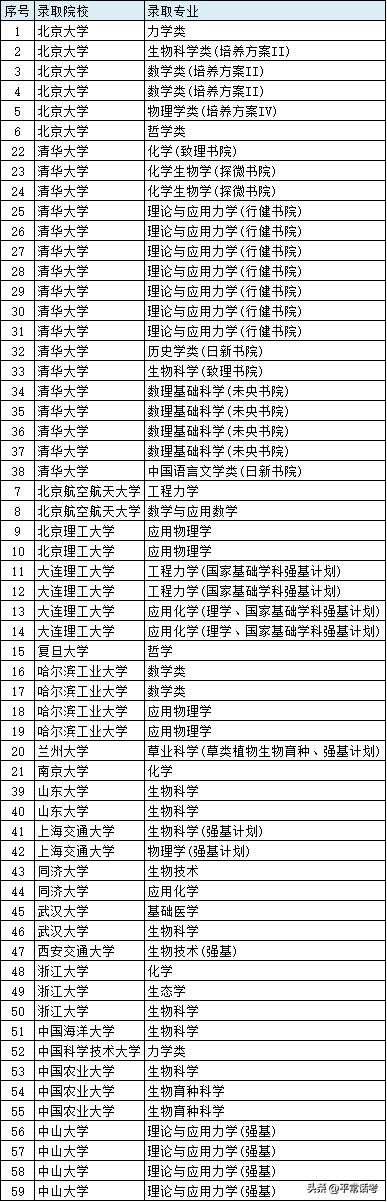 这589人被76所大学录取,最多23人,最少1人。当然,人数与招生计划的数量和实力有关。