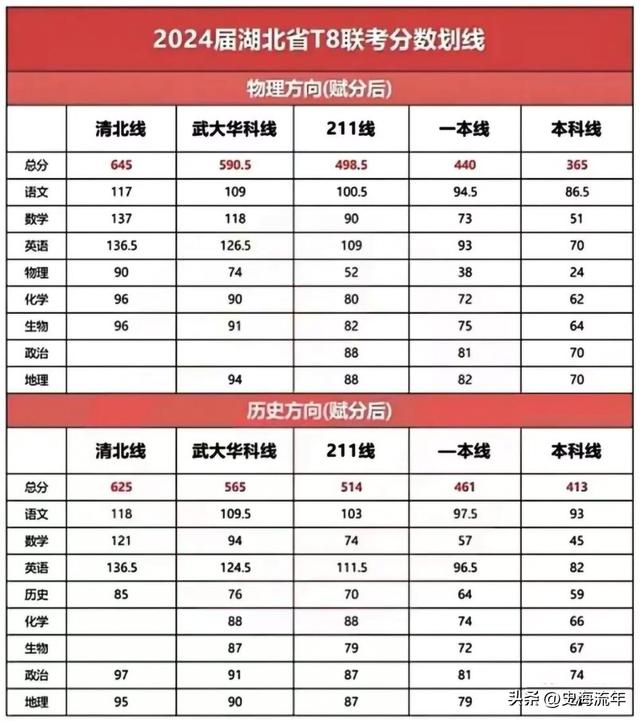 一、2024年“T8联考”分数线预测物理类是湖北省T8联考分数线预测划线的首选,清华大学和北京大学预测分数线为645分,录取到