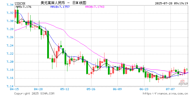 7月28日,人民币兑美元中间价报7.1467,下调48点。