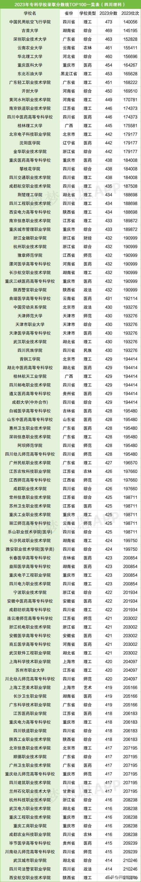 在四川理科中,录取分数线最高的五所专科学校是民航飞行学院(473分)、吉首大学(469分)、深圳职业技术大学(463分)、云南农业大学(461分)、华北理工大学(460分)。