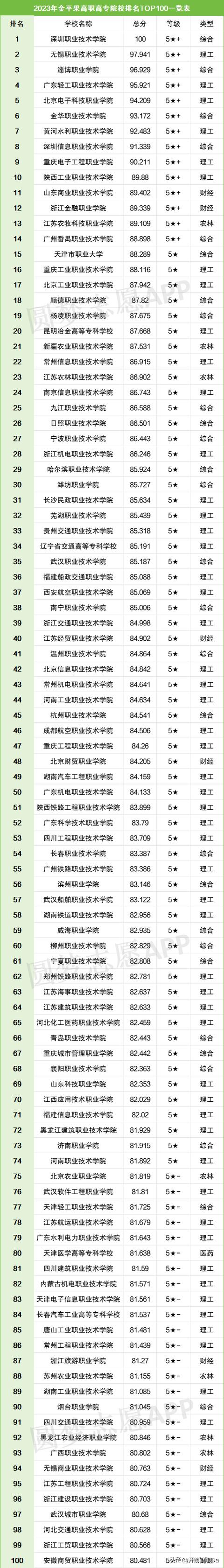 2023年金平果发布的中国高职院校排名前十的分别是: