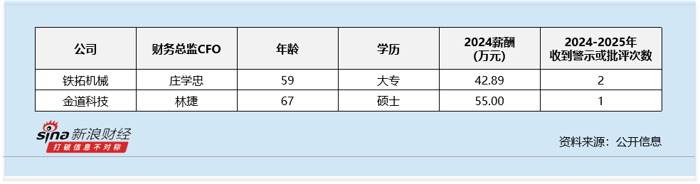 工程机械行业财务总监CFO观察:金道科技林捷67岁为行业最年长 收到1次警示函 2024年薪酬为55万元