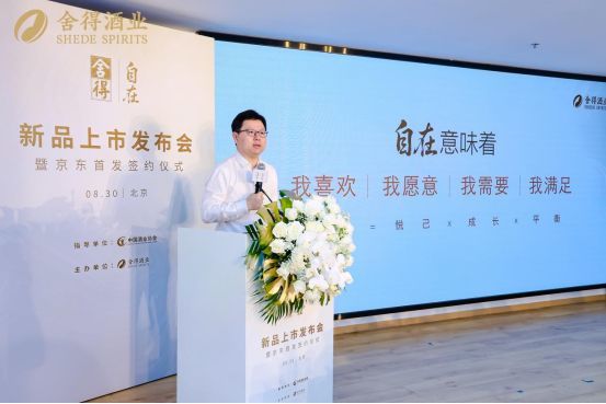 8月30日,舍得自在新品上市发布会暨京东首发签约仪式在中国酒业协会举行。