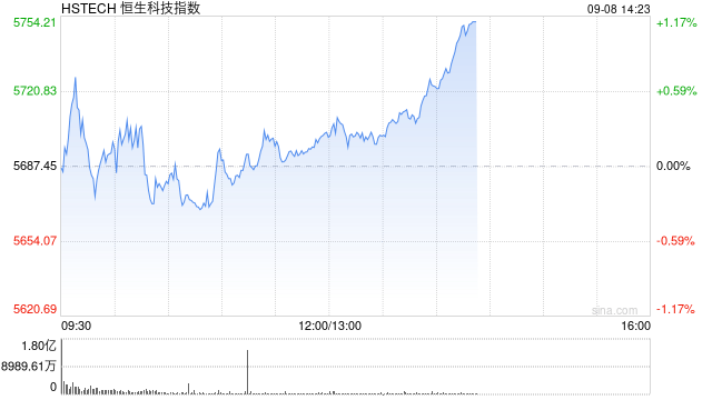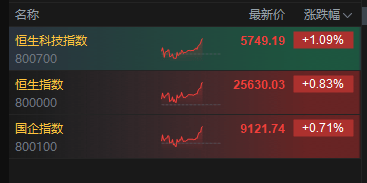 港股三大指数午后走高 恒生科技指数涨超1% 百度涨超10%