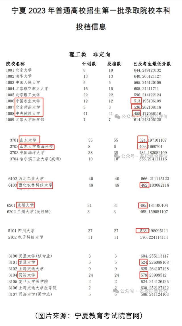 宁夏2023年理工科考生409分山东大学威海分校,455分捡漏中央民族大学,兰州大学485分,524分捡漏复旦大学