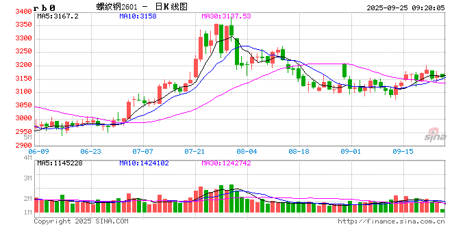 昨日螺纹盘面窄幅波动,截止日盘螺纹2601合约收盘价格为3164元/吨,较上一交易收盘价格上涨9元/吨,涨幅为0.29%,持仓增加0.08万手。现货价格稳中有涨,成交小幅回升,唐山地区迁安普方坯价格持平于3030元/吨,杭州市场中天螺纹价格上涨10元/吨至3230元/吨,全国建材成交量8.74万吨。据钢谷网数据,本周全国建材产量回升5.99万吨至411.91万吨,社库增加0.21万吨至662.48万吨,厂库增加5.51万吨至319.66万吨,建材表需增加7.44万吨至406.19万吨。建材产量回升,库存继续累积,表需小幅增加,数据表现偏弱。短期螺纹价格向上没有明显驱动,但向下空间也较为有限,预计短期螺纹盘面仍窄幅整理运行为主。