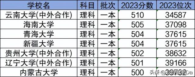 当然,2024年的高考还没有到来。我们暂时不知道2024年500分左右可以上的大学名单,但是可以根据2023年整理的数据给大家解答。每年高考录取分数线差距不会太大,所以2023年的数据很有参考价值。比如云南省,2023年能上500分的本科院校高达175所,包括许多国家重点大学和省级重点大学,比如兰州理工大学、山西农业大学、齐齐哈尔大学、西南民族大学、云南农业大学、河南工业大学、福建中医药大学、南昌工程学院、广西师范大学、西北民族大学、