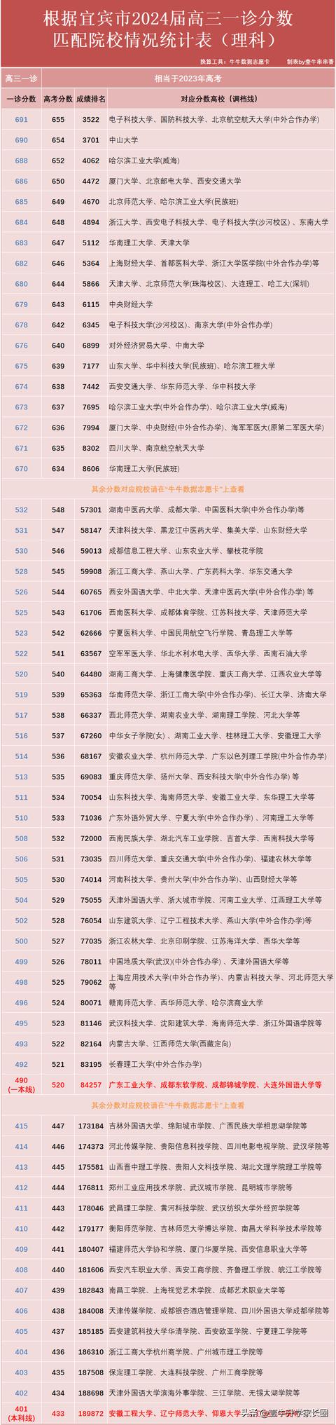 理科401分就能上本科了!宜宾一诊划线和省级排名换算~~