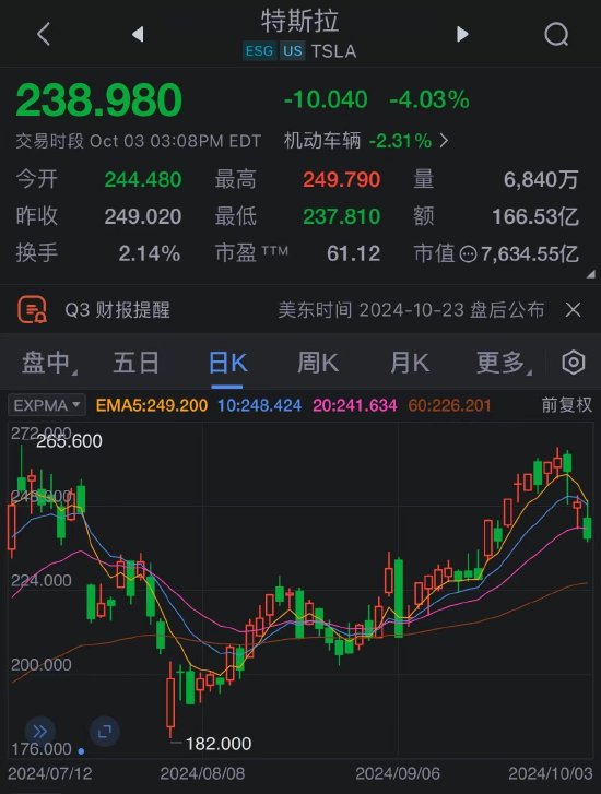 尽管债券发行符合当前行业趋势,特斯拉股价在周四盘中仍下跌超4%。