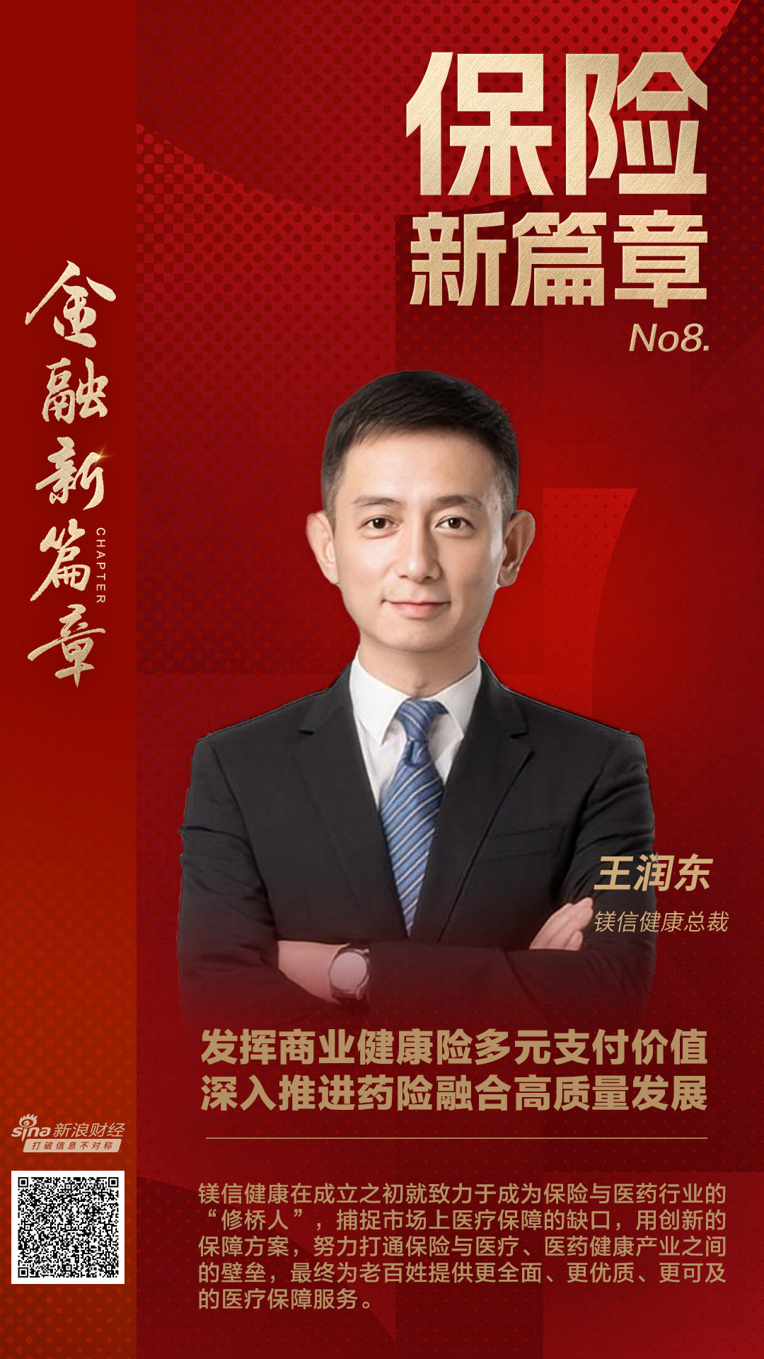 谈及对“五篇大文章”的见解,王润东表示:“中央金融工作会议提出做好金融五篇大文章,为保险及大健康产业在新时代的高质量发展提供了根本遵循与行动指南。中国式现代化的金融探索中,镁信健康坚持金融工作的政治性、人民性,积极贯彻落实中央金融工作会议精神和监管部门相关要求,结合自身禀赋特点,充分发挥‘保险+医疗’双平台优势,服务国家和战略,助力培育和发展健康产业新质生产力,以新气象新作为做好‘五篇大文章’,为推动多层次医疗保障体系建设、推进‘健康中国2030’建设贡献力量。”