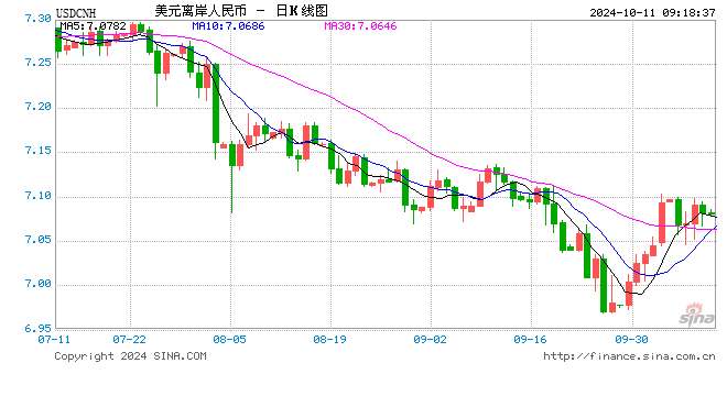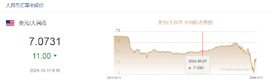 10月11日,人民币中间价报7.0731,上调11点,上一交易日中间价报7.0742。