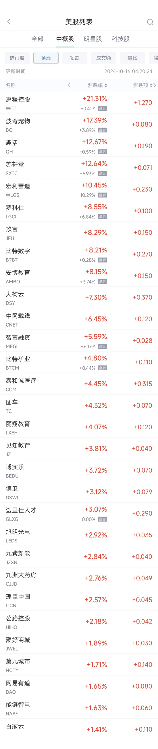 领涨中概股列表: