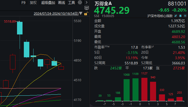 整体上个股涨多跌少,全市场超2700只个股上涨。沪深两市全天成交额1.38万亿元,较上个交易日缩量2594亿。