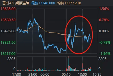 比如富时A50期指,在交易时段就多次转涨、转跌。
