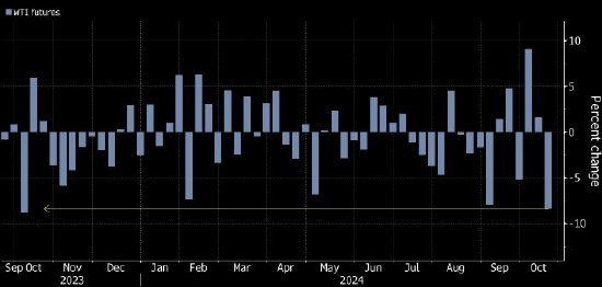 周五WTI下跌逾2%,结算价约每桶69美元,布伦特回落,结算价约每桶73美元。WTI原油本周跌幅为8.4%,为2023年10月以来最大。