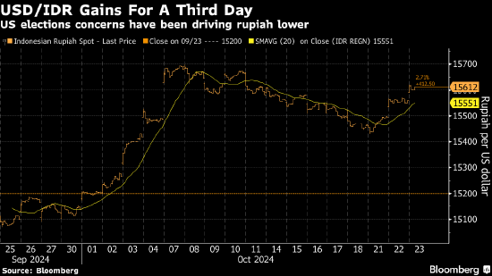 10月以来,印尼盾和其他亚洲货币一样一直面临贬值压力,因市场降低了对美联储大幅降息的预期,并在消化唐纳德·特朗普赢得美国总统选举的可能性。印尼盾本月迄今已下跌3%,印尼央行在最近一次会议上将关键利率维持在6%不变,并将关注点重新转回到稳定印尼盾上。