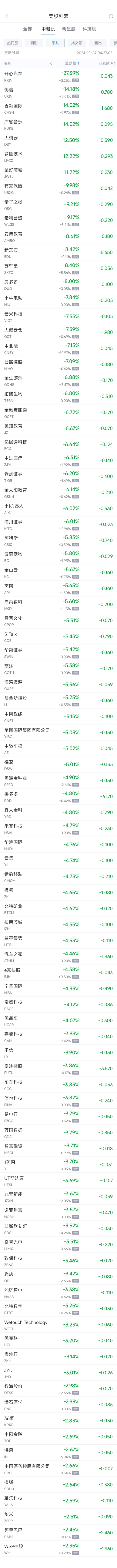 下跌股当中(按市值降序排列),阿里巴巴跌2.45%,拼多多跌4.80%,京东跌0.87%,网易跌1.22%,百度跌2.21%,中华电信跌1.02%,贝壳跌0.91%,日月光半导体跌1.93%,中通跌0.75%,腾讯音乐跌1.78%,联电跌1.28%,富途控股跌3.86%,蔚来跌0.76%,新东方跌8.42%,满帮跌1.53%,哔哩哔哩跌0.49%,BOSS直聘跌1.07%,WSP控股跌2.35%。