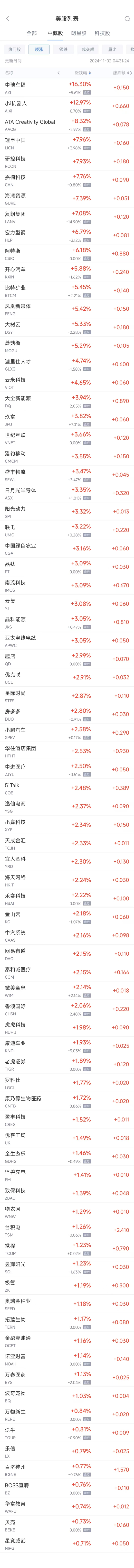 领涨中概股列表: