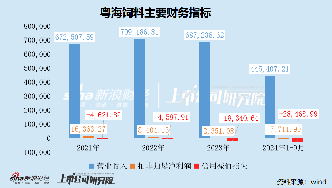 近日,粤海饲料发布了2024年三季度报告。2024年前三季度,公司业绩降幅扩大,营收和净利润分别同比下降16.24%、311.13%。造成本期巨亏的主要原因系计提了巨额的信用减值损失。