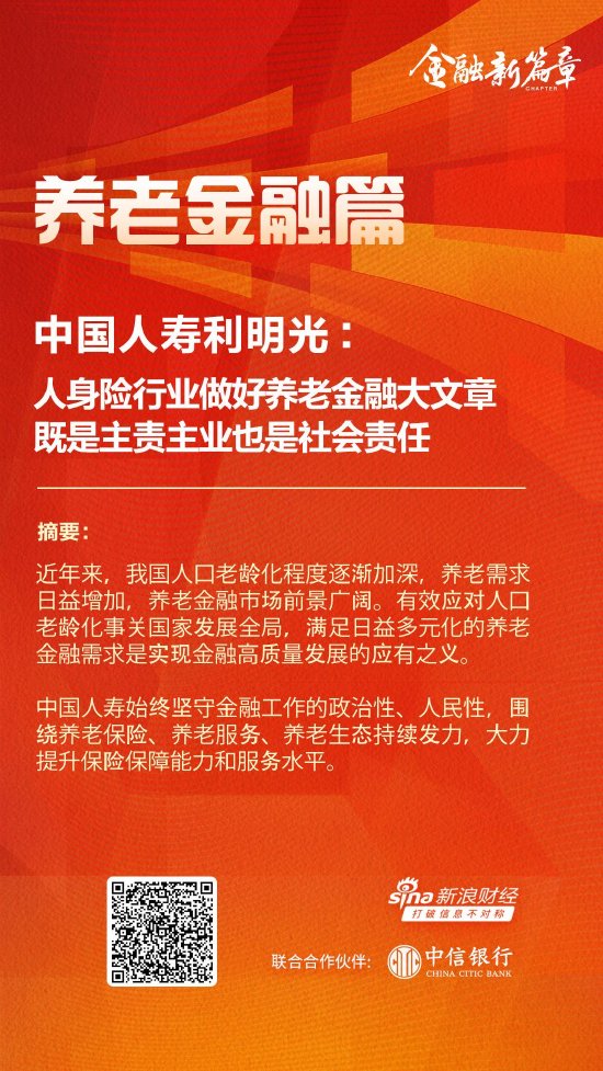 中国人寿利明光:人身险行业做好养老金融大文章 既是主责主业也是社会责任