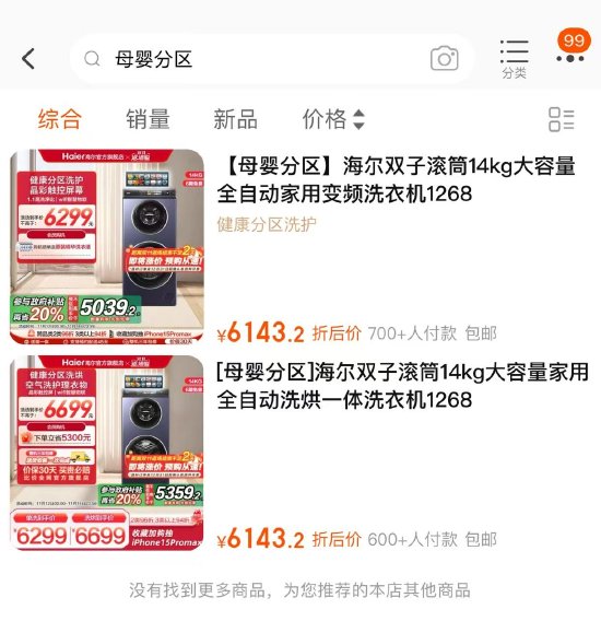 对此,《5D调查》致电海尔售后,客服表示将核实消费者情况,并在次日下午五点前回复。同时,《5D调查》搜索海尔官方旗舰店发现,相关功能的洗衣机仅剩两款,且价格均较李先生购买价格高。