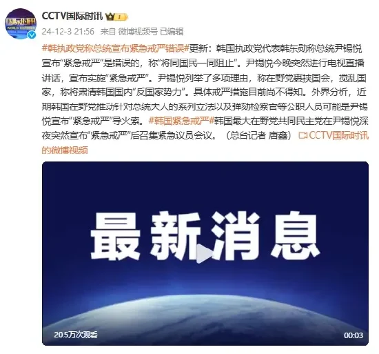 专题:韩国政治纷争加剧 总统尹锡悦深夜宣布“紧急戒严”