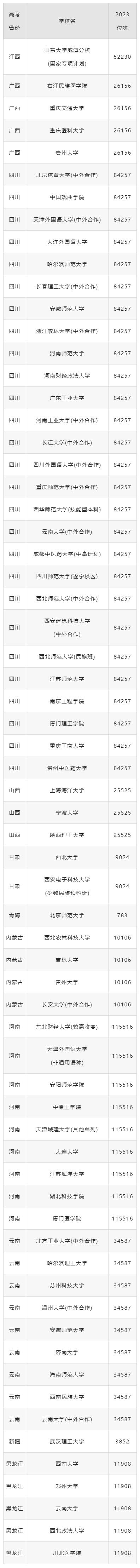 和郑州大学等待公立大学。下表列出了2023年全国各省文科高考最低分520分的大学,以及不同考试省份520分的排名,供参考。