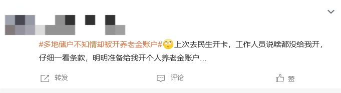 还有网友仔细查看条款后才发现自己被银行工作人员隐瞒了开户信息:“上次去民生开卡,工作人员说啥都没给我开,仔细一看条款,明明准备给我开个人养老金账户。”